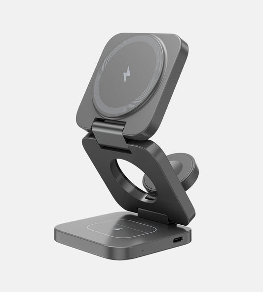 KUXIU X55 3-in-1 Foldable Magnetic Wireless Charger Station - Gray