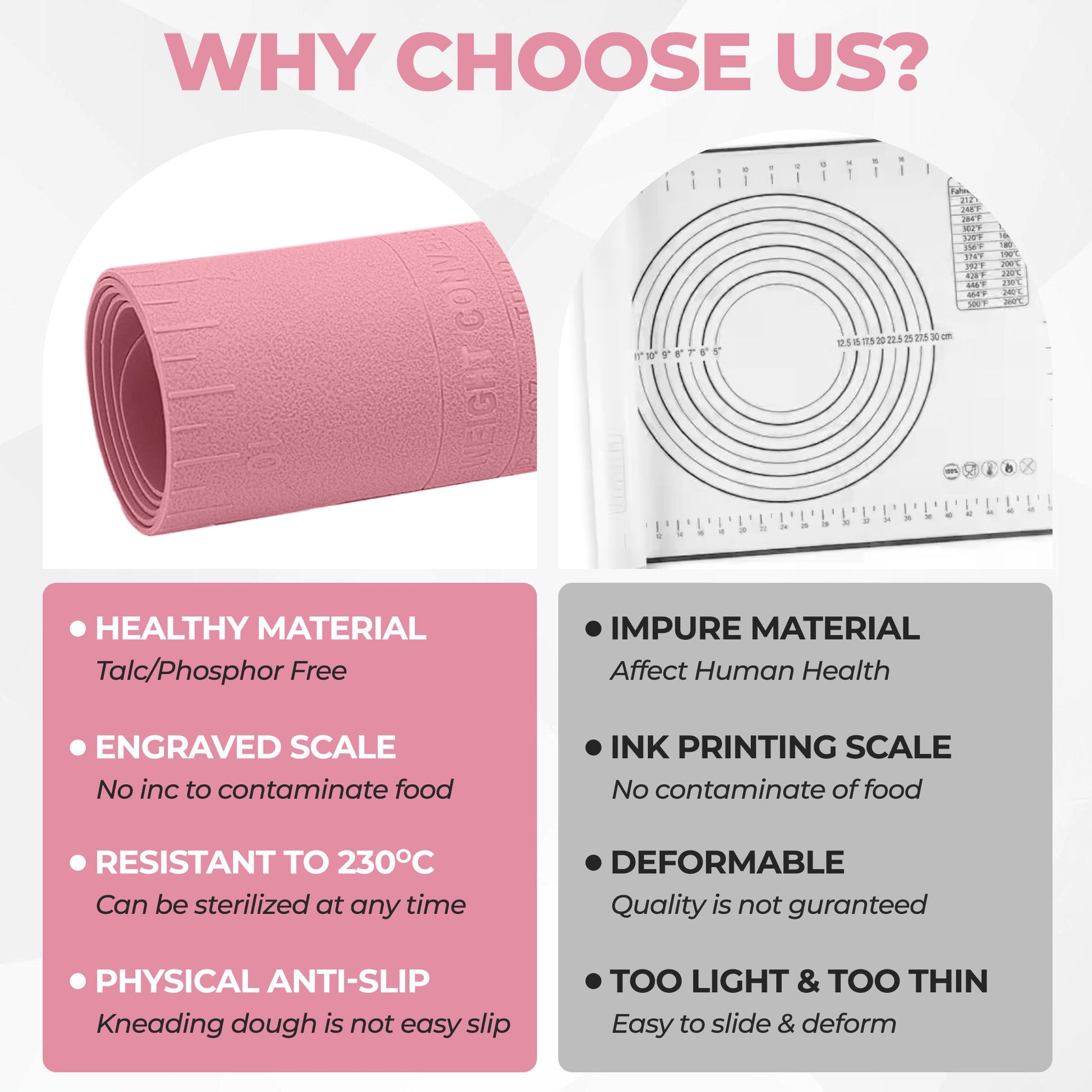 ✔️ Shop risk-free with a lifetime guarantee and superior quality: Built to last with FDA-approved, high-quality silicone that withstands -40°C to 220°C, this mat is safe and ultra-durable. Backed by a lifetime guarantee, your investment is protected—if you’re not head-over-heels satisfied, return it anytime for a hassle-free full refund. Plus, our friendly 24/7 support team is ready to help, so you can buy with total peace of mind.