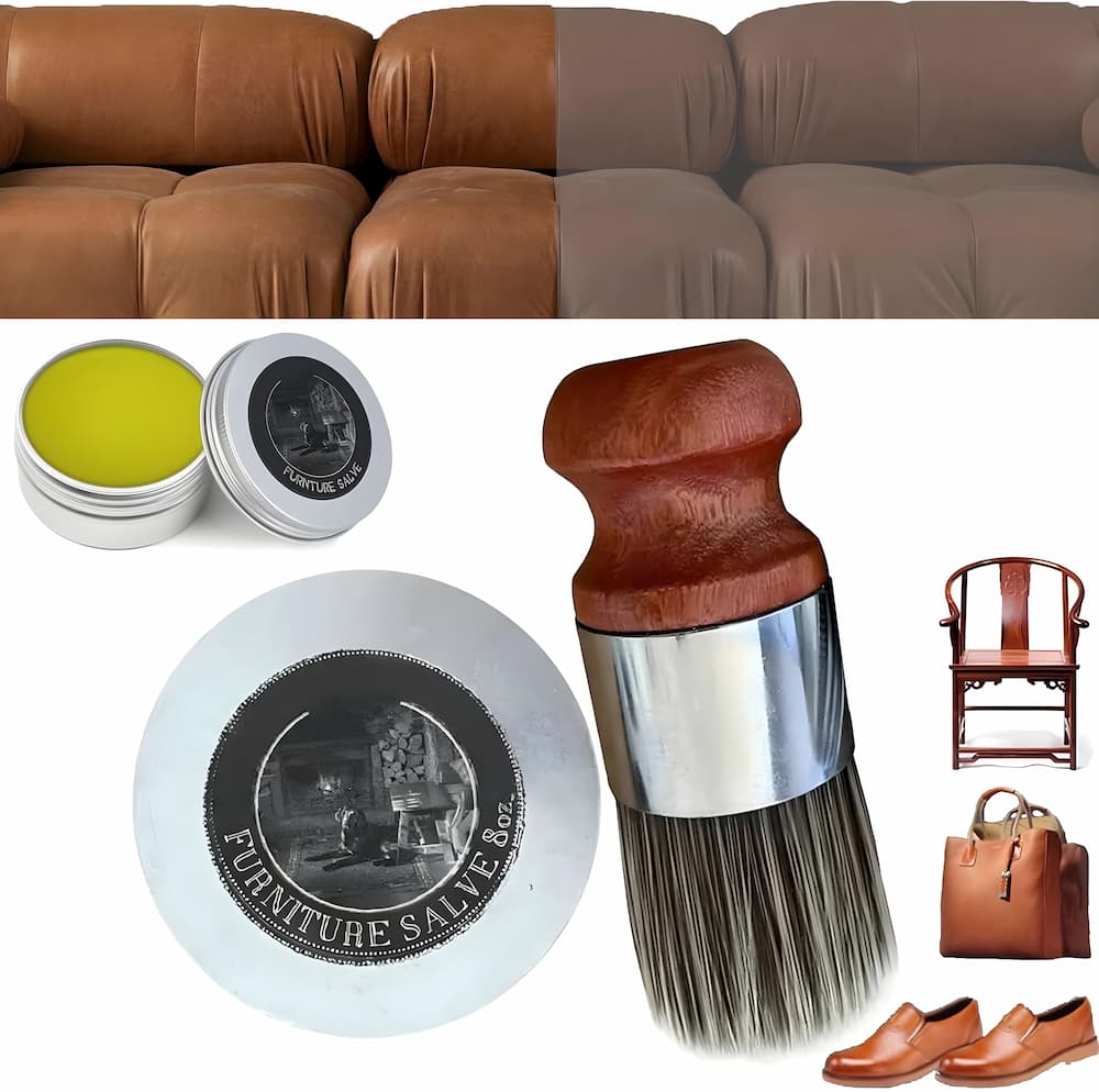 - Dip and apply: Gently dip the supplied brush into the balm and spread a thin layer onto clean, dry leather or wood surfaces.