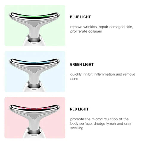 Technology: Ion Therapy, Vibration, Warmth, Red Light, Blue Light, Green Light; Package: 1 x Beauty Device for Neck, 1 x USB Charging Cable, 1 x User Manual; Delivery: 24-72h, Pay on Delivery, 100% Satisfaction Guaranteed