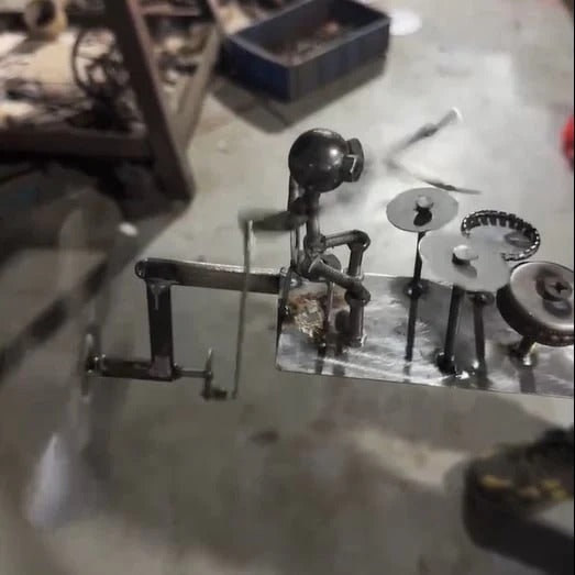 Add a musical touch to your outdoor space with this decorative windmill made of hand-welded metal . Even a light breeze causes the wheel to spin, and the musician figure seemingly comes to life. The rustic industrial style and the guitar arrow make it a charming eye-catcher – ideal for the garden, patio, or balcony.