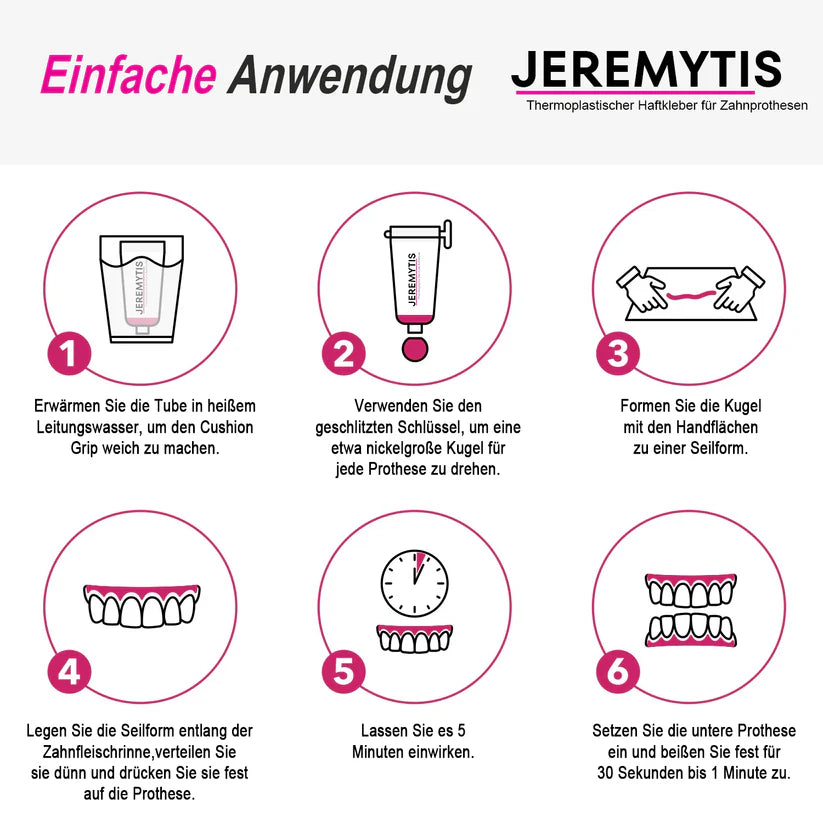 The JEREMYTIS Thermoplastic Denture Adhesive provides strong adhesion, enhances the stability and comfort of your dentures, and allows you to enjoy daily activities without pain.