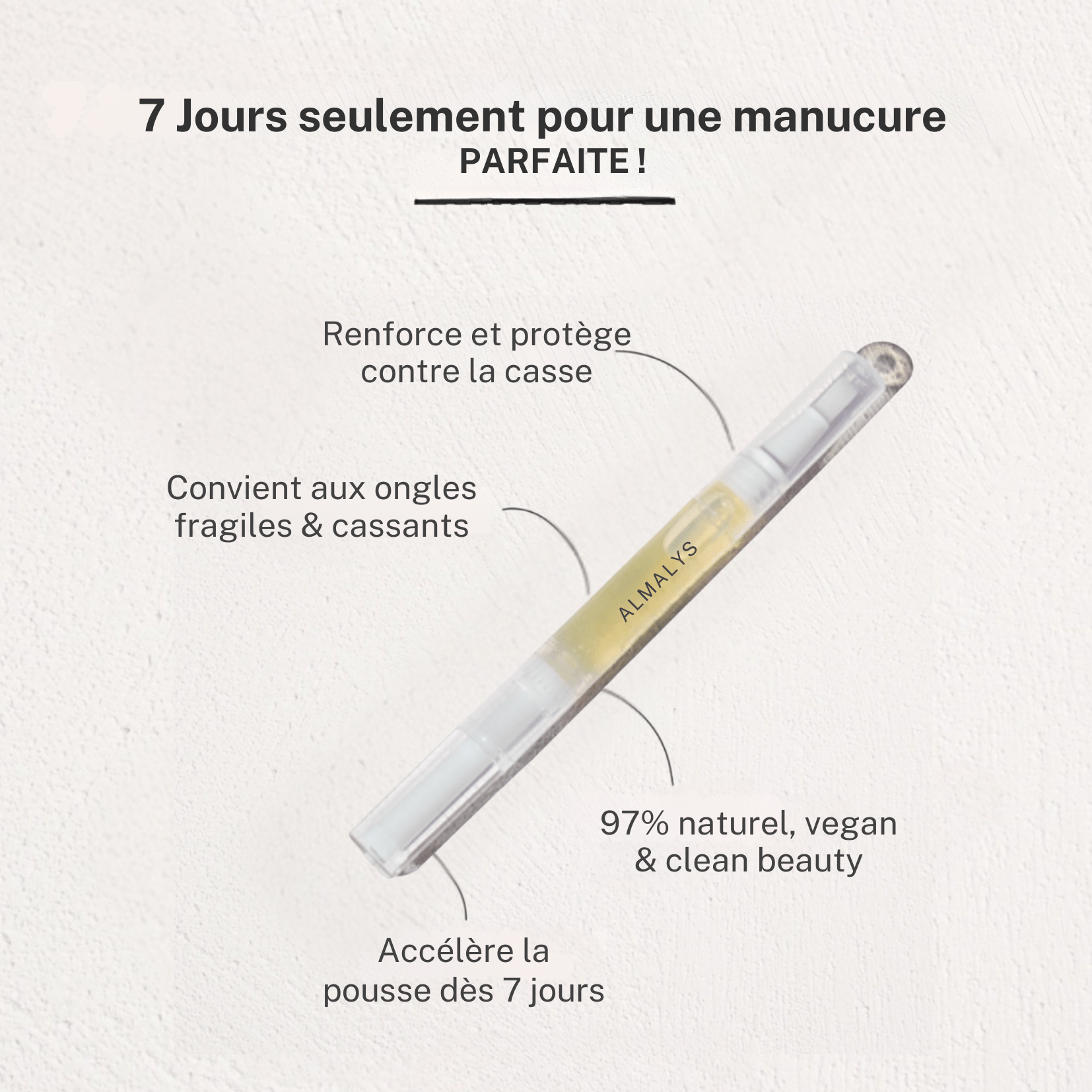 Multi-layer protection: Provides a protective barrier while allowing the nail to breathe.Easy application: With its ergonomic design and non-greasy formula, it's perfect for everyday use.Choose healthy, strong nails at any age and whatever your lifestyle. With Almalys, restore your nails to their natural beauty and vitality.